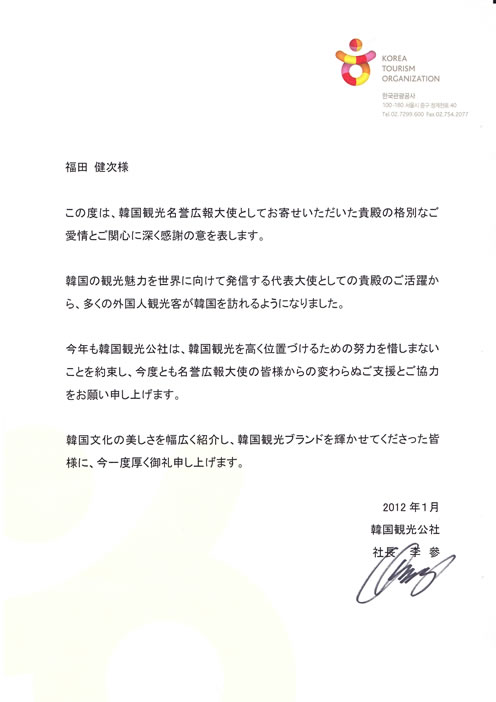 その思いで、私は韓国観光名誉広報大使として活動をさせていただいています